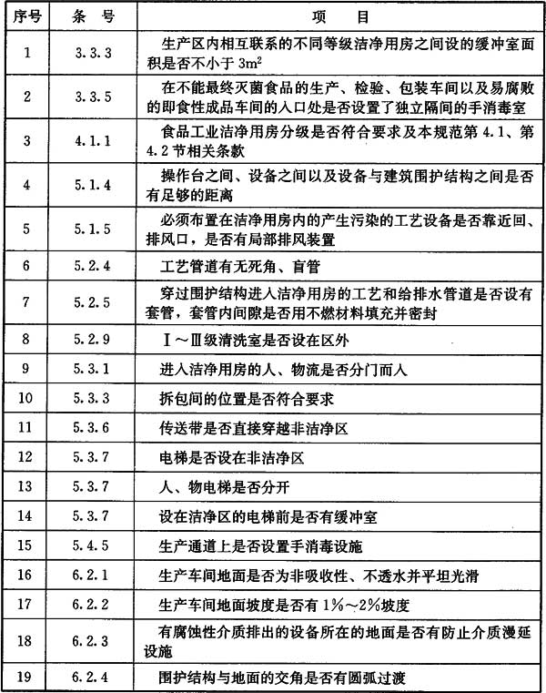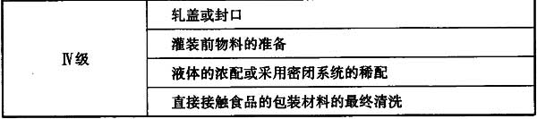 注:表中生產階段或關鍵控制點應符合本規范表4.2.1的說明,具有高污染風險,才適用Ⅱ級背景下的Ⅰ級(含設備自身具備的)的條件,如冷卻階段中的月餅、酸奶的冷卻,檢驗階段中的一般理化檢測則不適用此種條件。