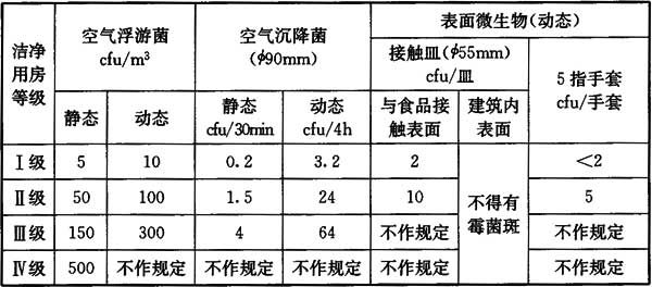 4.2.1 食品工業(yè)潔凈用房等級應符合表4.2.1的規(guī)定: