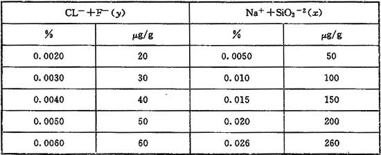 x——測得的(Na+SiO32-)離子含量<0.005%。