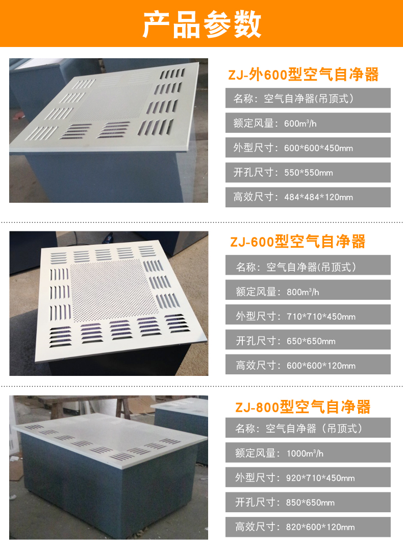 空氣自凈器是由玻璃纖維過濾料制作的高效過濾器,多翼前向式低噪音離心機組,新型無紡布預濾器和電器等部件組成,安裝在外表面噴塑處理、鋼板折彎焊接形成的箱體內,具有結構緊湊、外型美觀、體積小、便于拆卸、耐腐蝕等優點,適用于小面積如實驗室、凈水廠、食品廠等潔凈車間裝修。